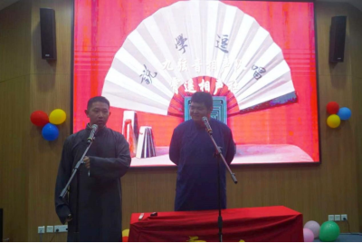 九弦音艺术团霄遥相声队任云飞与李伯晗同学带来的相声《夸住宅》压轴登场,格外精彩。两位相声人语言轻松诙谐,有趣的包袱时不时引发现场大笑,扎实的说学逗唱基本功赢得了热烈的掌声。架不住同学们的热情,任云飞同学再次返场,又为大家带来一段单口相声,节目引人入胜。