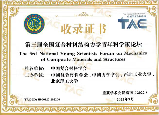 2022年8月31日-9月2日,由西北工业大学联合中国复合材料学会、中国力学学会、北京理工大学共同主办的第三届全国复合材料结构力学青年科学家论坛于江苏太仓成功举办。本次论坛由西北工业大学张超教授、北京理工大学雷红帅教授共同发起并担任执行主席,旨在为复合材料结构力学领域专家、青年学者之间的合作研究提供一个良好的、稳定的学术交流平台,为复合材料结构力学技术与行业健康、有序与创新发展提供重要战略参考与前瞻部署支撑。本届论坛也被2022中国科协重要学术会议指南收录。