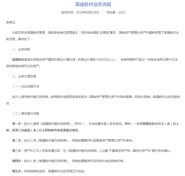 原文地址:国资处网站 → 资产管理 → 《高值耗材业务流程》
